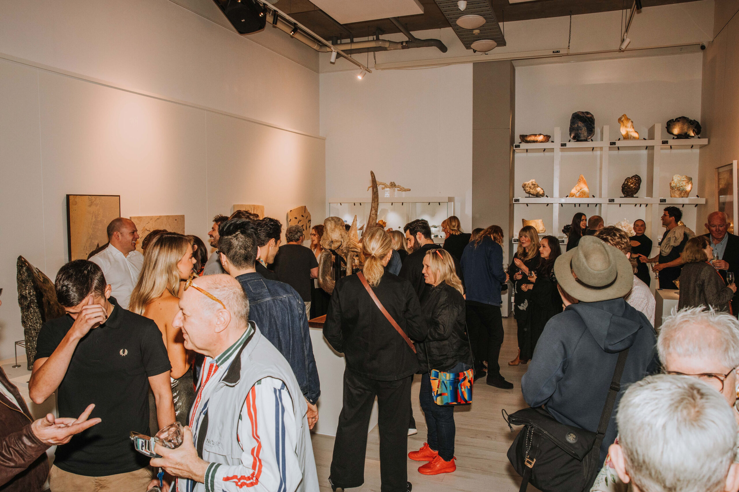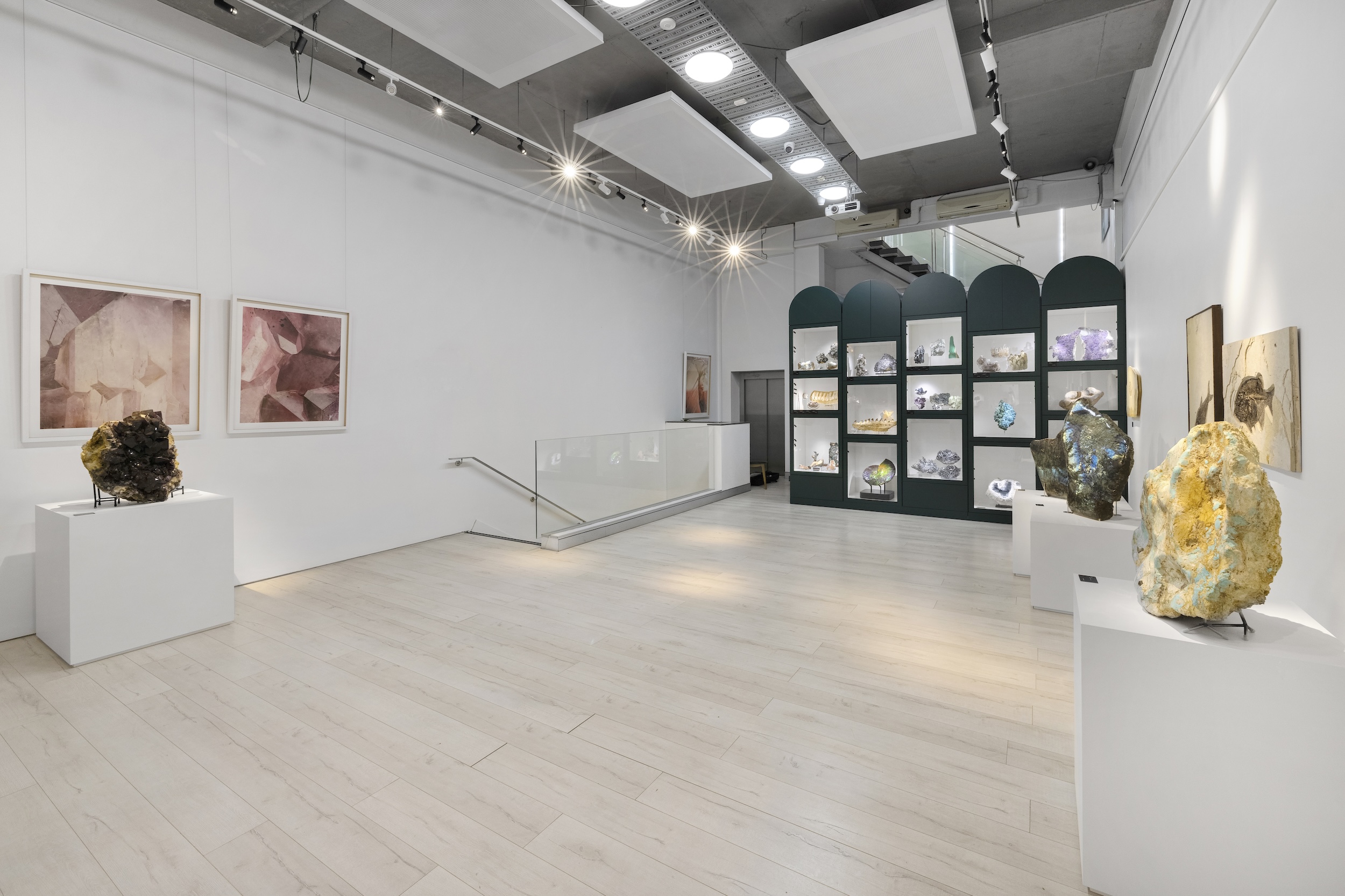 The Gallery Space is a high-impact venue designed for events and entertainment. With soaring 5-metre ceilings and a rotating display of rare minerals, fossils and crystal specimens, it offers a dramatic backdrop for product launches, long-table dinners, cocktail events, performances, screenings and networking. Immersive lighting, built-in AV, and lift access make it as functional as it is visually striking, creating a seamless setting for elegant occasions and brand-defining moments.
